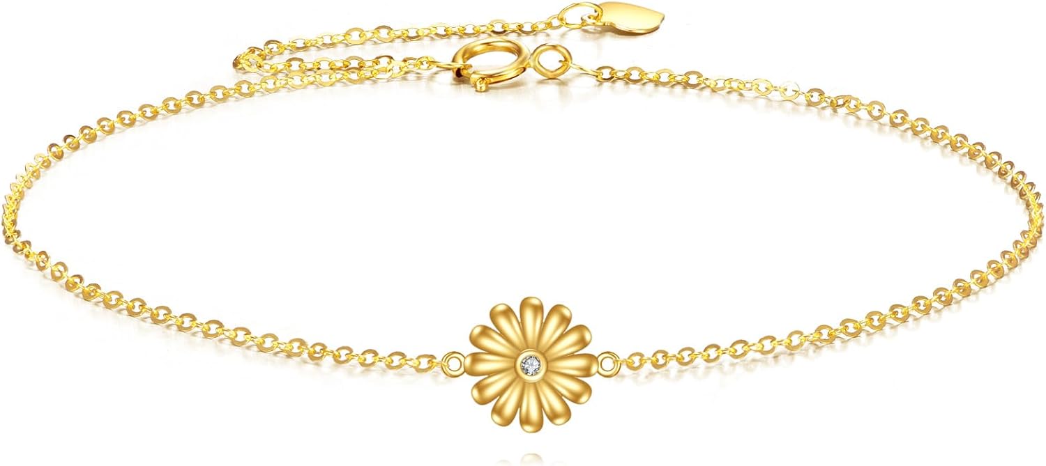 DOVRAN 14K Solid Gold Daisy Bracelet Flower Bracelet Jewelry Gifts for Women