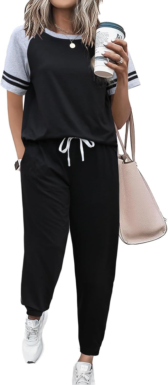 Ekouaer Lounge Sets for Women Two Piece Pajama Set Short Sleeve Crewneck Jogger Outfits and Sweatpants Tracksuit