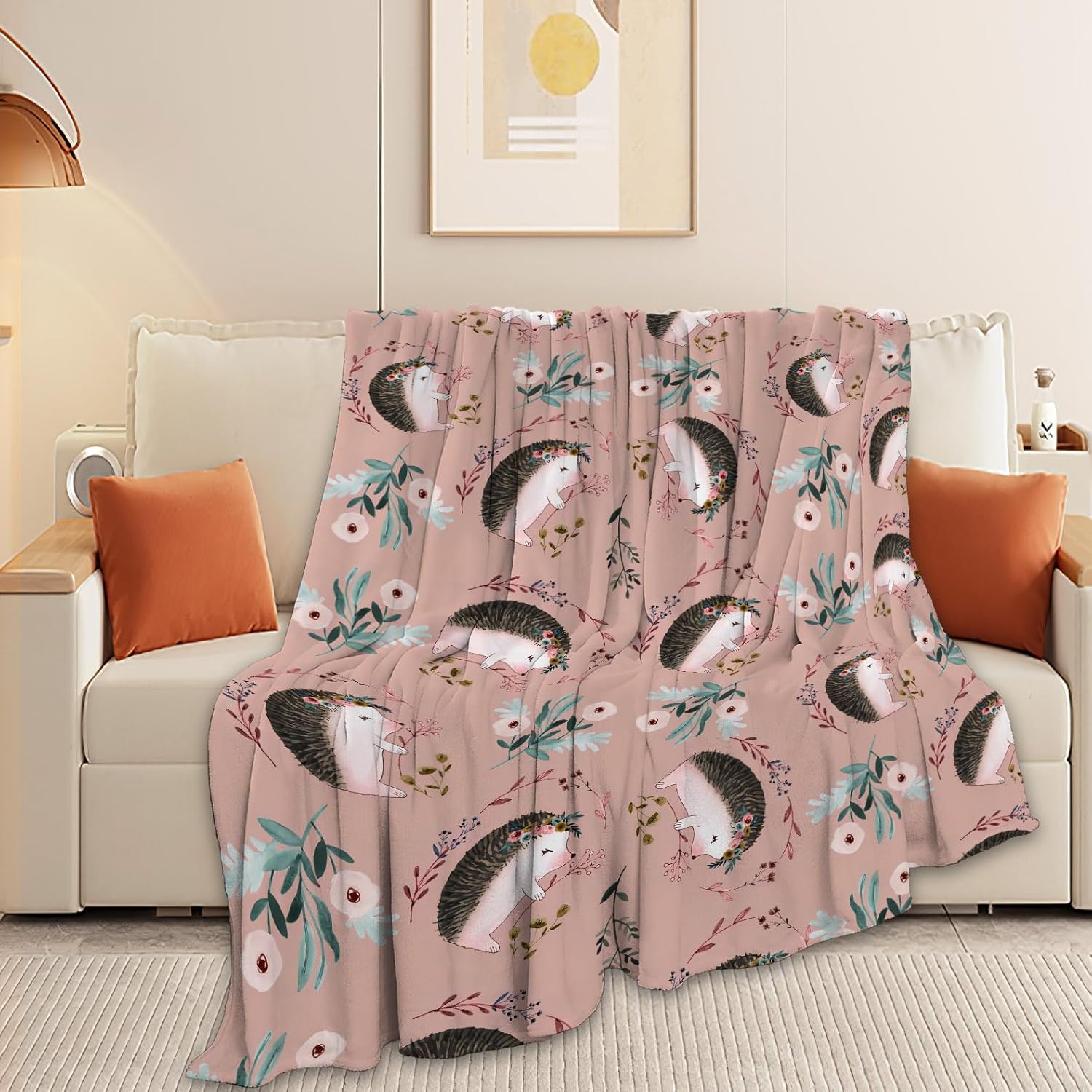 Tijuboni Ultra Soft Cozy Plush Hedgehog Throw Blanket - Hedgehog Lovers Gifts for Girls, Women, Kids & Adults - Lightweight Flannel Comfy Blankets for Nursery, Couch, Sofa - 50"x40"