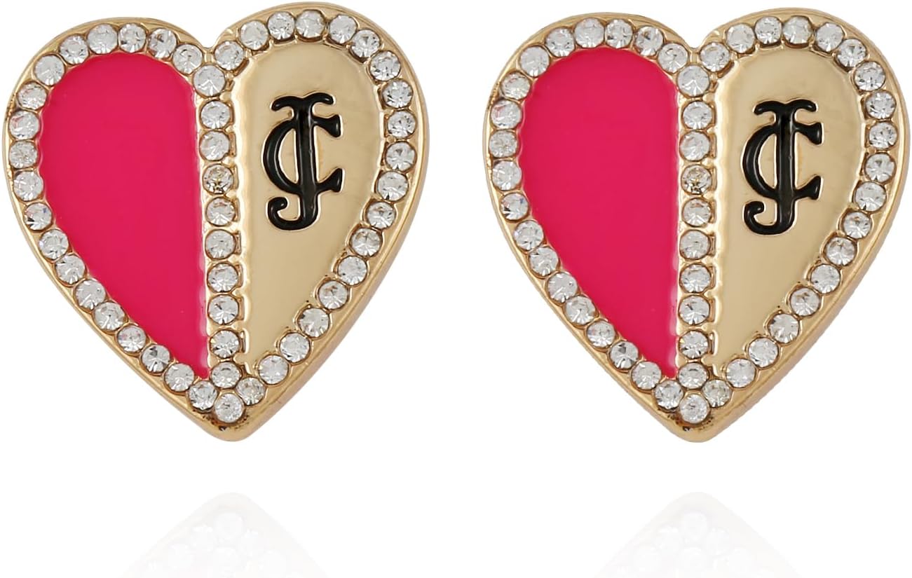 Juicy Couture Gold and Pink Heart Stud Earrings For Women