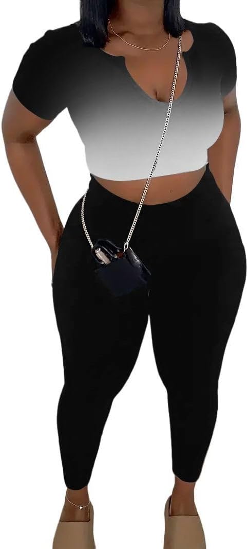Nimsruc 2 Piece Sets For Women Sexy Casual Workout Crop Short Sleeve Long pants Leggings Sets Summer Active Wear