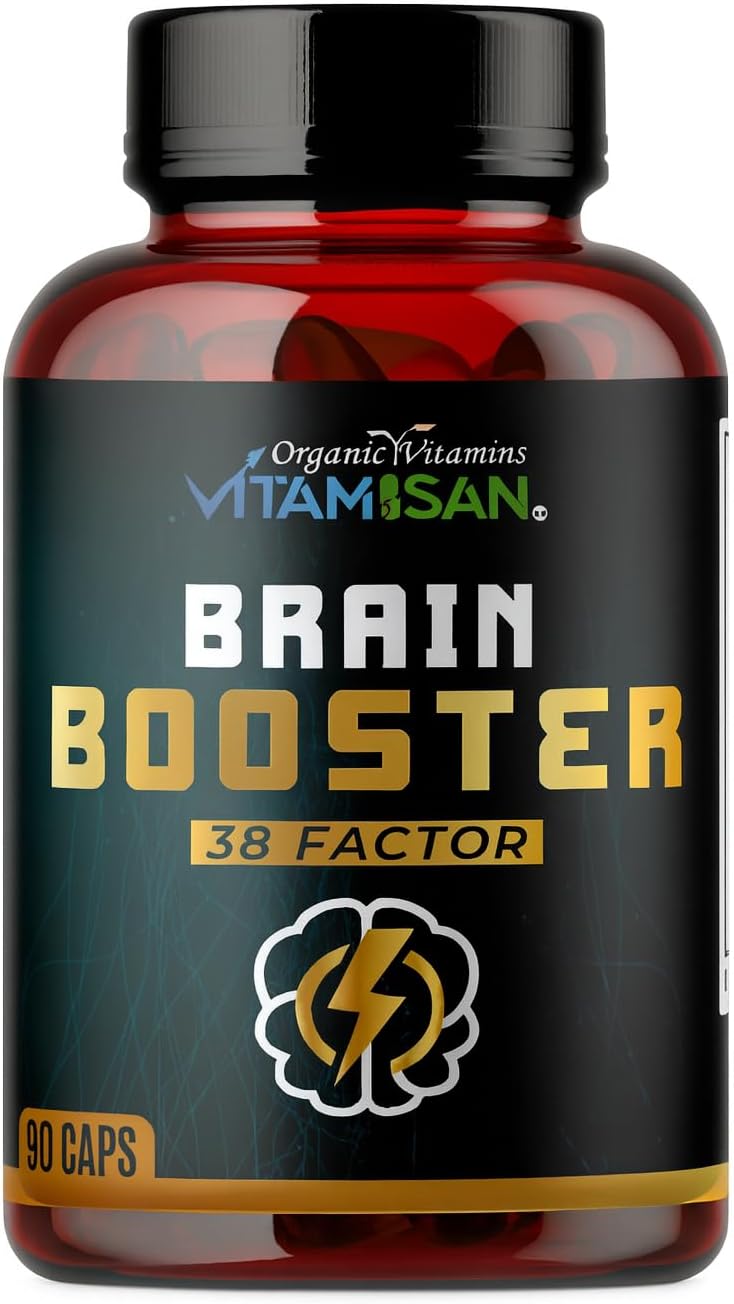 Brain Booster 38 Factor | Premium Herbal & Vitamin Blend for Focus, Clarity & Cognitive Support | Adaptogen & Mushroom Complex with Vitamin B3 | Daily Mental Performance Formula – 90 Capsules