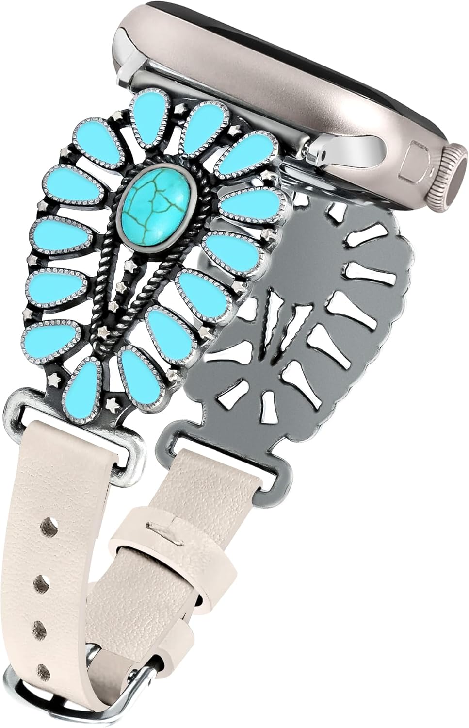 JR.DM Leather Band Compatible with Apple Watch Women 38/40/41/42/44/45/46/49mm Western Designer Boho Turquoise Retro Tribal Classic Straps for iWatch Series 10 9 8 7 6 5 4 3 2 1 SE Ultra
