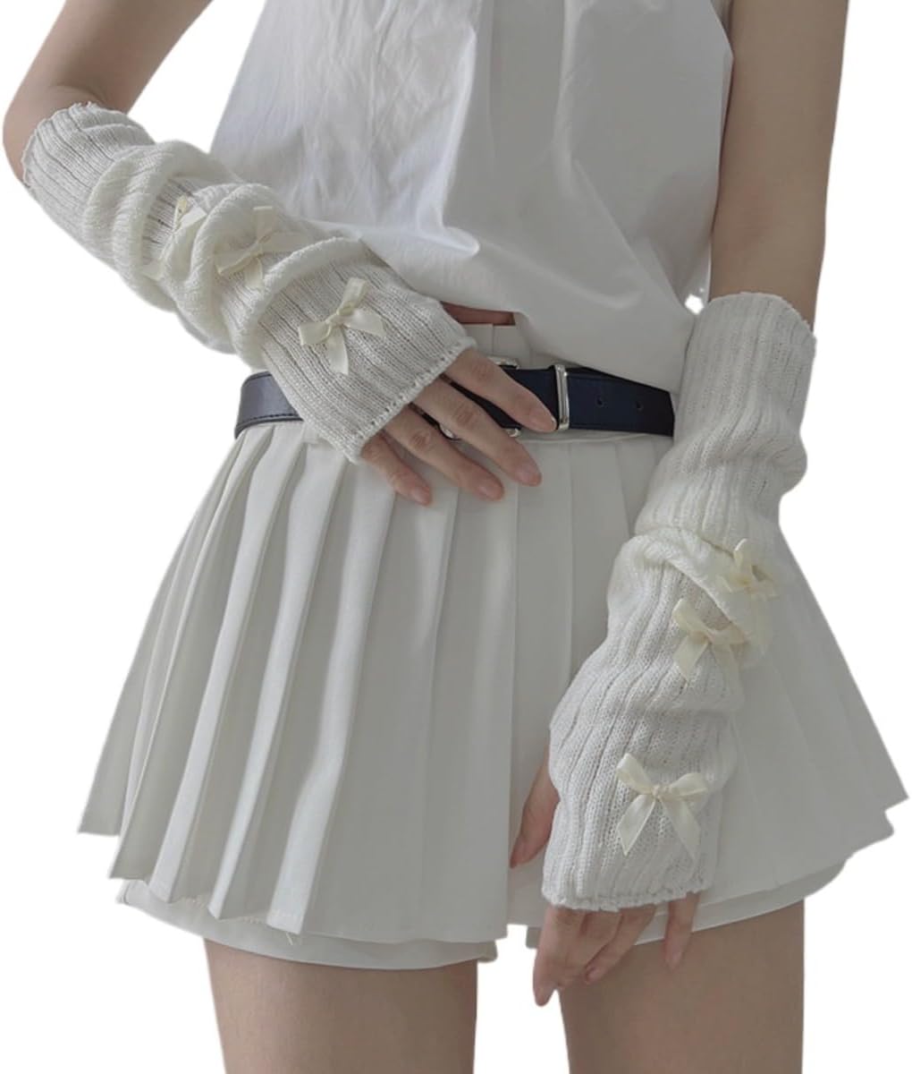 Women's Cute Y2K Arm Warmers Kawaii Knitted Arm Sleeve Fashion Gothic Punk Style Fingerless Sleeve