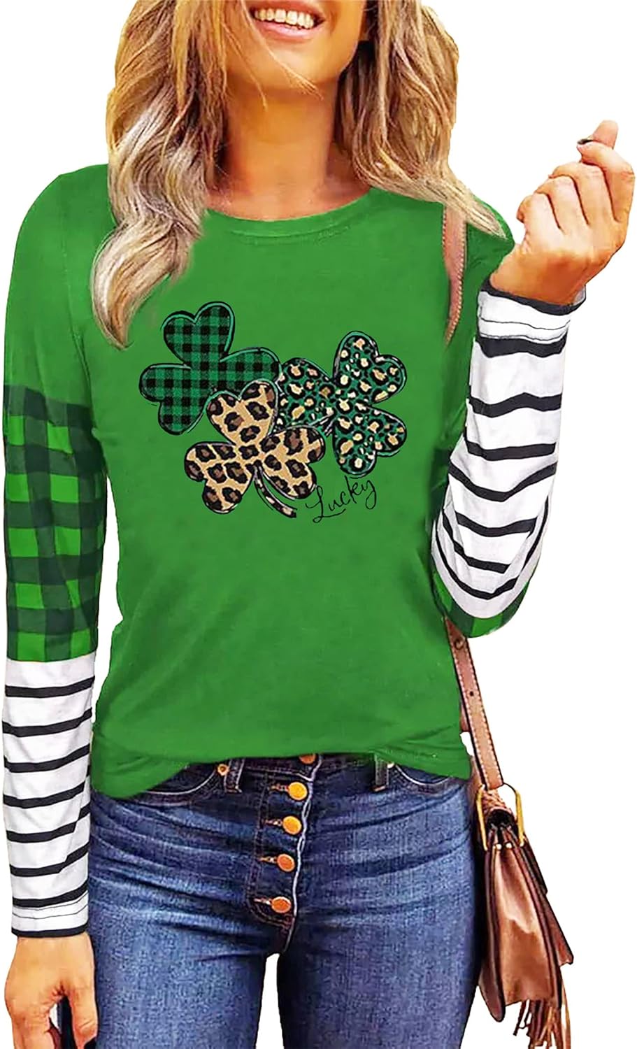 St. Patrick's Day Tshirt Women Lucky Clover Print Irish Shirt Splicing Long Sleeve Raglan Tees Baseball Tops
