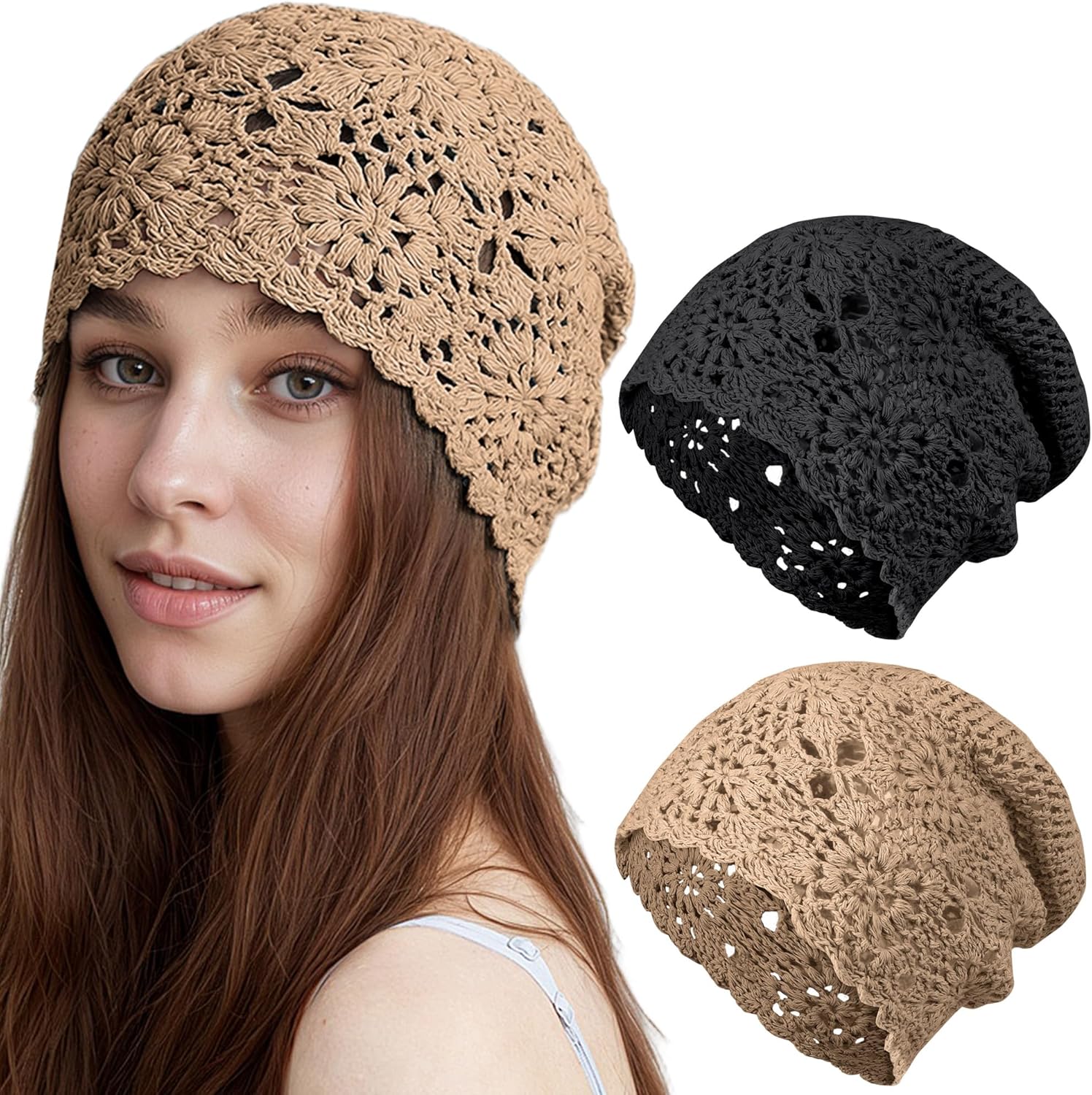 Ababalaya Women's Cotton Crochet Hat Boho Beanie Handmade Knit Skull Caps for All Seasons