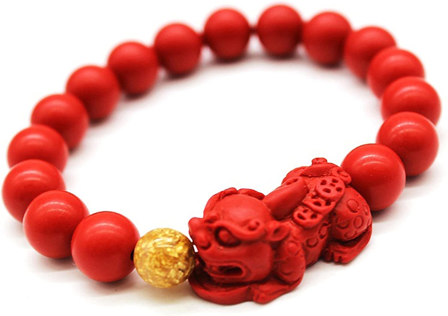 Feng Shui Amulet Red Pi Xiu Cinnabar Bracelet Prosperity Red Bead Bracelet with Charm Pi Yao Natural Stone Beads Bracelet Attract Wealth Money and Good Luck W4582-8mm