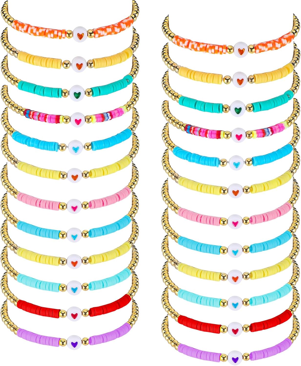 Sureio 24 Pcs Colorful Groovy Retro Friendship Bracelets Heart Hippie Surfer Friendship Bracelets Stretch Beaded Kids Bracelet for Tween Girls Women Groovy Party Favors