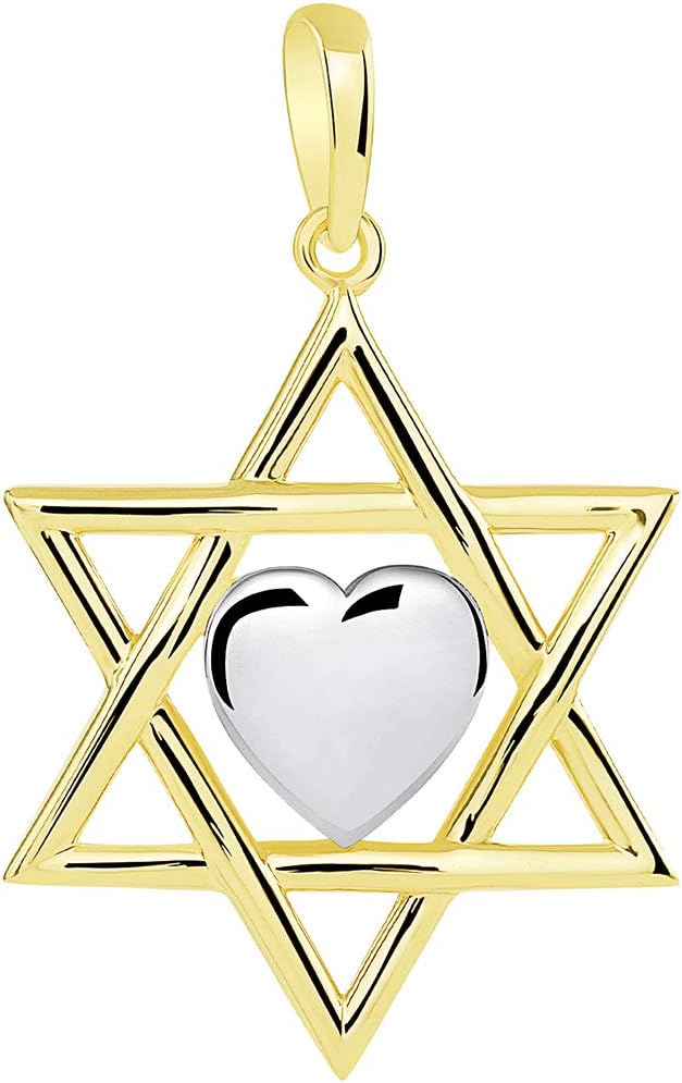 Jewelry America 14k Yellow Gold Hebrew Love Star of David with Heart Pendant