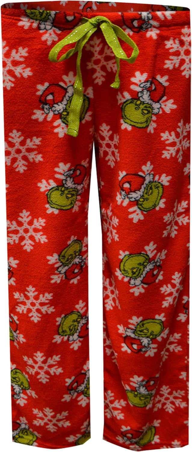 MJC Womens Dr. Seuss The Grinning Grinch Snowflake Plush Lounge Pants