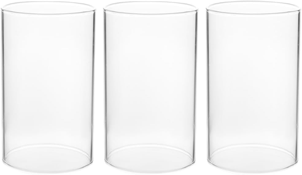 Windproof Clear Glass Cylinder Candle Holder 3 Pack Open Ended Candle Tube Shades 2.36 Inch Diameter 5.9 Inch Height for Home Decor and Romantic Atmosphere