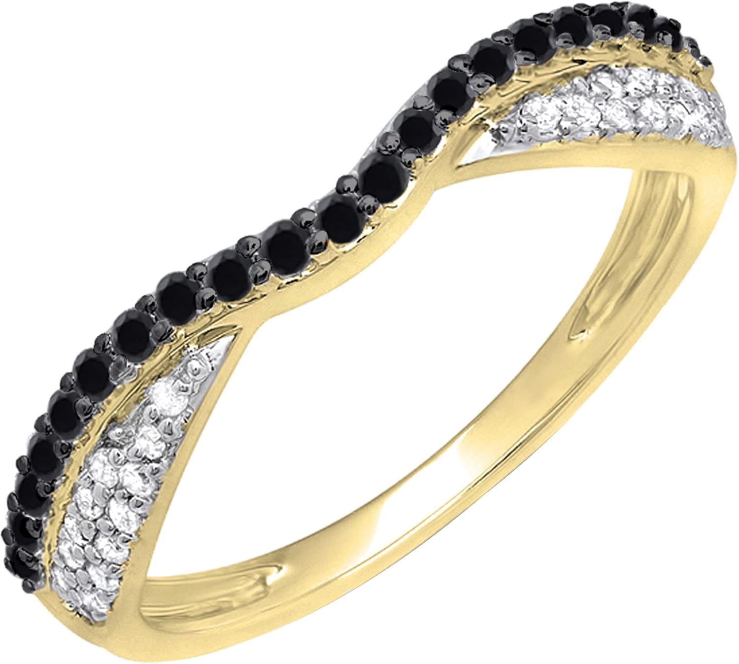 Dazzlingrock Collection 0.36 Ctw 10K Solid Gold Round Black & White Diamond Anniversary Wedding Band Stackable Ring 1/
