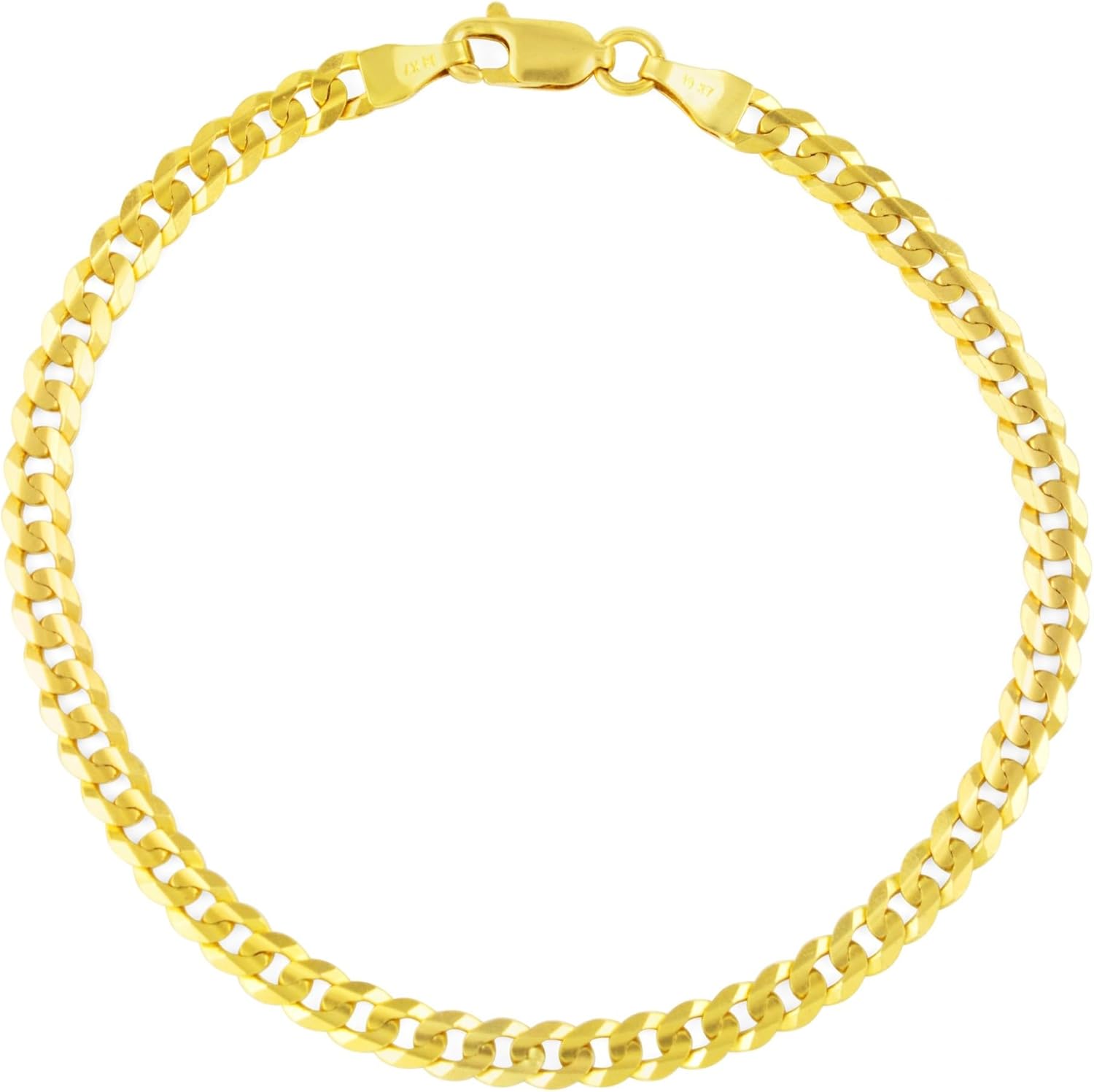 Nuragold 14k Real Yellow Gold Solid Cuban Curb Link 4mm Chain Bracelet (7"-9") Italian Jewelry for Men & Women