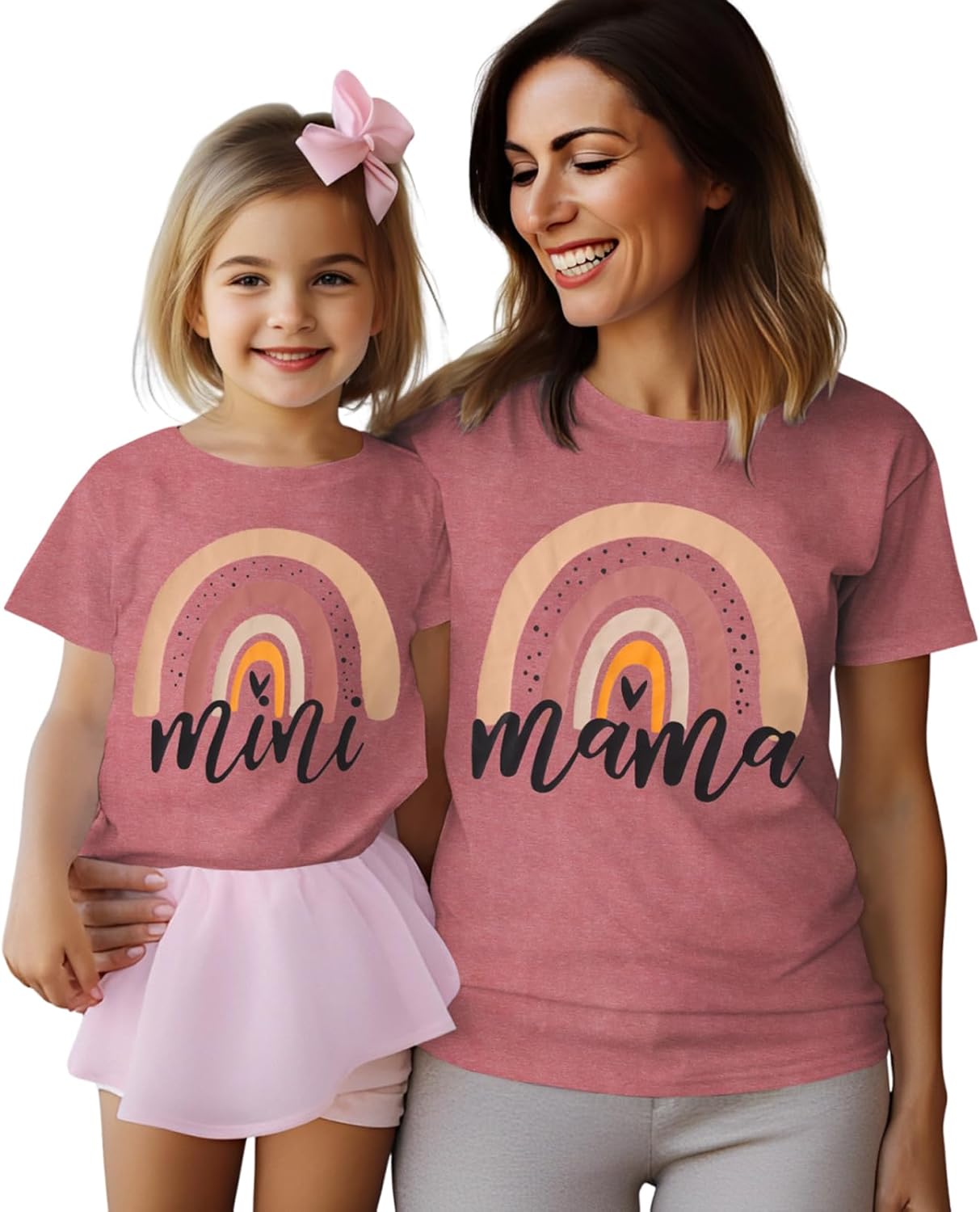 Mommy and Me Matching Outfit Mothers Day Rainbow Mama Mini Shirts Cute Mom Daughter Family Matching Set Gifts Tees