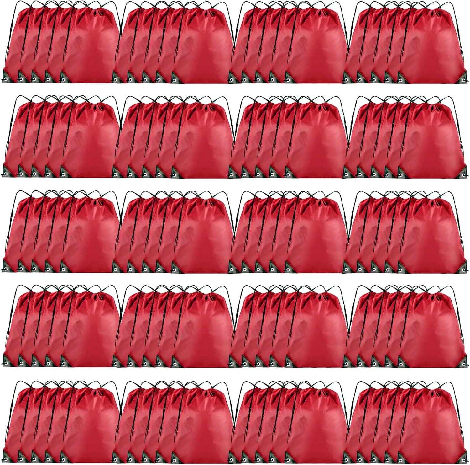 Drawstring Backpack Bulk 100Pcs Cinch Bag, Polyester Drawstring Bags for Gym Beach Sports Short Trip Party (Red)