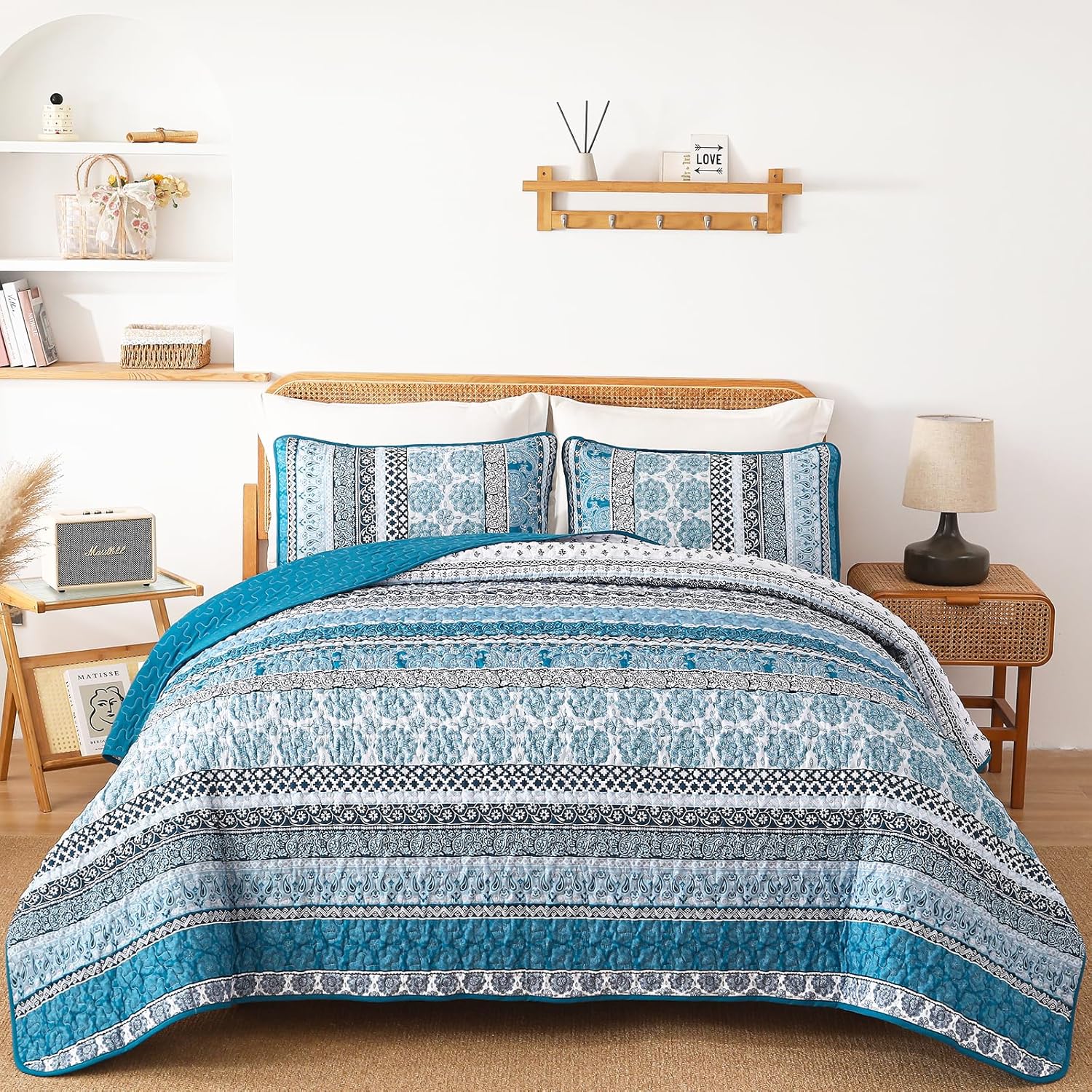 - HIGH QUALITY MATERIAL: Teal blue bohemian quilt bedspread made of microfiber, super soft, smooth, and breathable. You can use it as a quilt in spring and summer, and a bedspread coverlet set in autumn and winter.