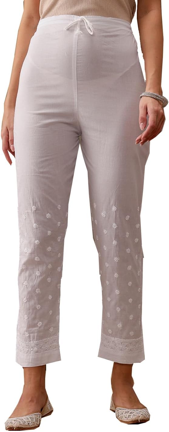 Ada Indian Hand Embroidered Traditional Chikankari Women's Cotton Palazzo Pant A100147