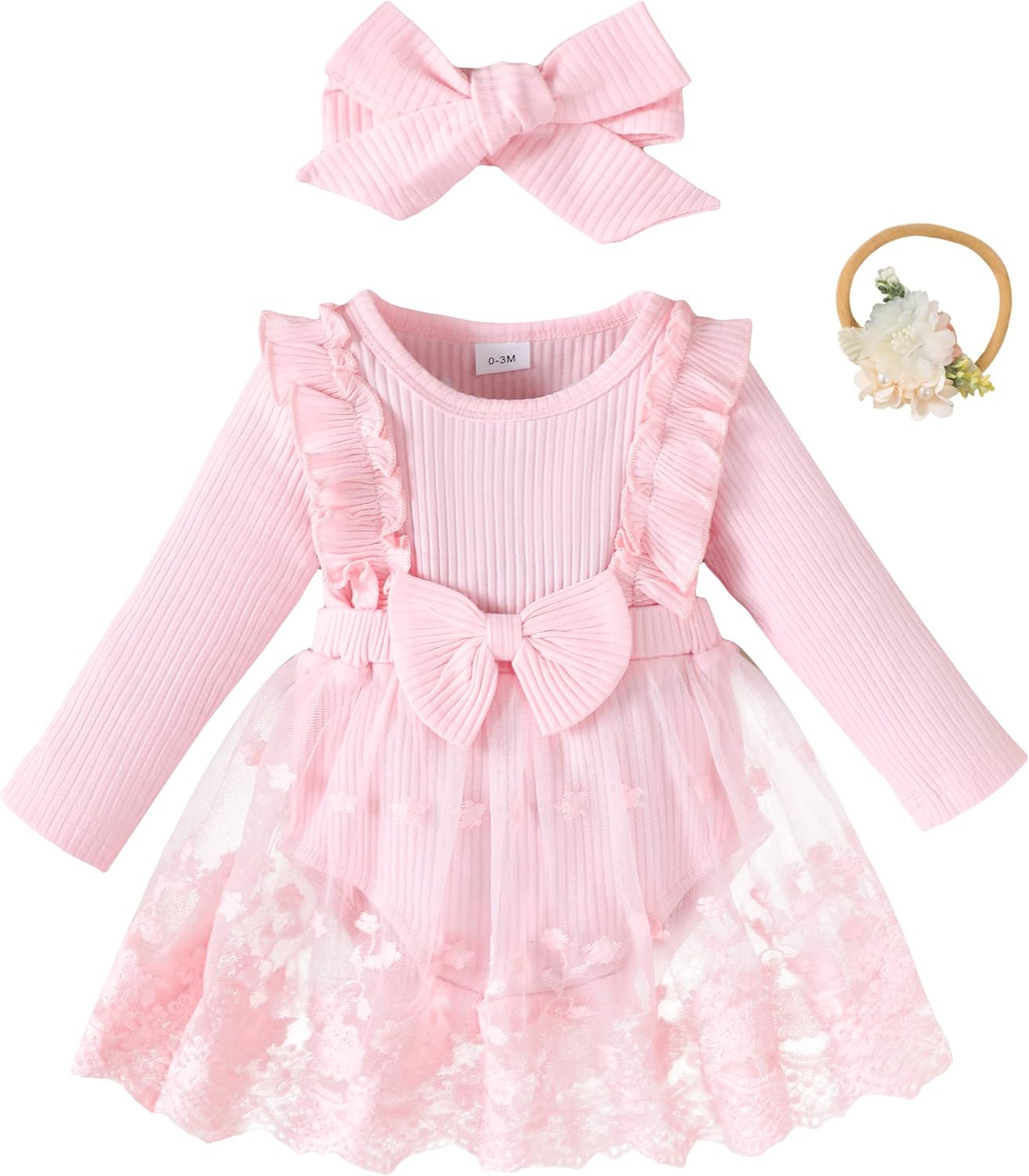 Renotemy Preemie Newborn Baby Girl Lace Romper Infant Fall Winter Flower Tulle Dress Party Gifts Newborn Photography Outfits