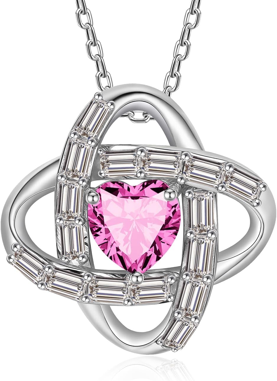 Birthstone Necklace for Women, S925 Sterling Silver Jewelry Gifts, White Gold Plated Love Knot Pendant, Anniversary Birthday Vanlentine Day's Gifts for Grandma, Wife, Mom and Sister