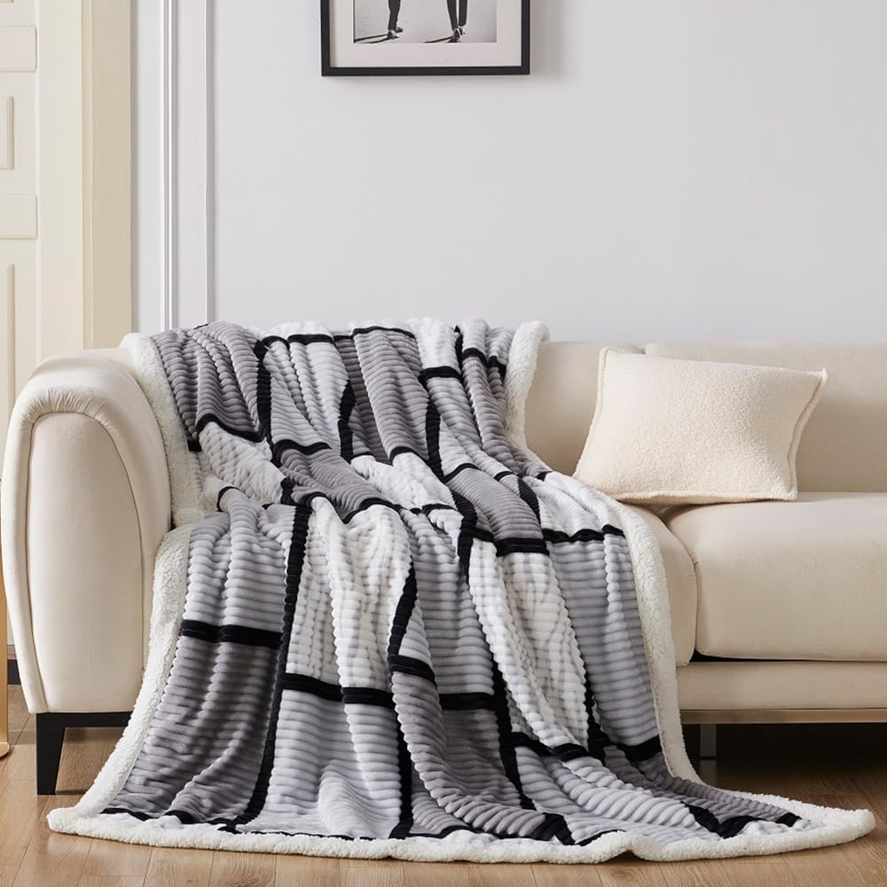 - SUPER SOFT & WARM: The Sherpa Fleece Blanket is made of 240GSM jacquard plush fleece on one side and 220GSM super soft sherpa fleece on the reversed side , this good quality Double-sided blanket is furry, shaggy, and ultra-cozy for stylish comfort all year round.