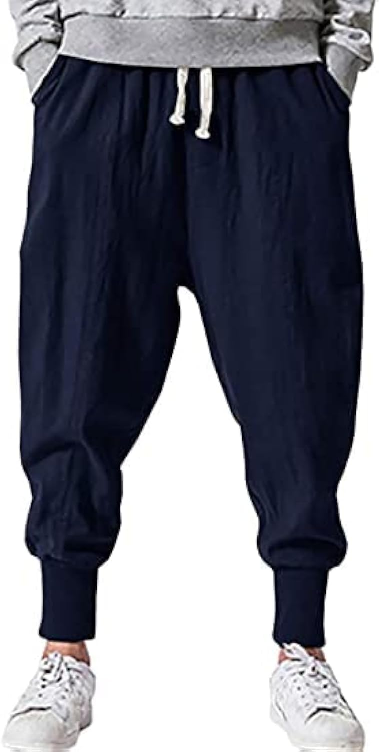 Pengfei Mens Cotton Cargo Pants Joggers Lightweight Elastic Waist Sweatpants Pants Navy