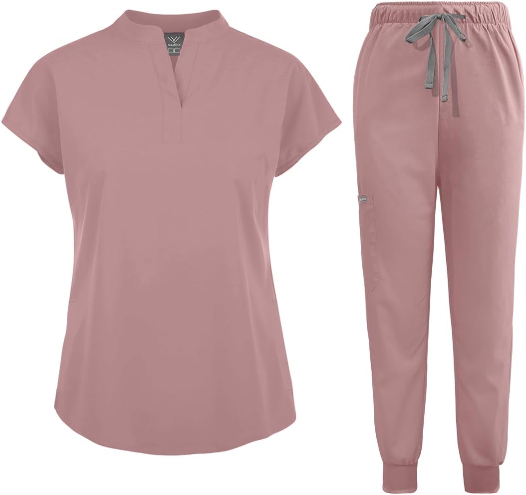 niaahinn Scrubs Set for Women Nurse Uniform Jogger Suit Stretch Top & Pants with Multi Pocket for Nurse Esthetician Workwear