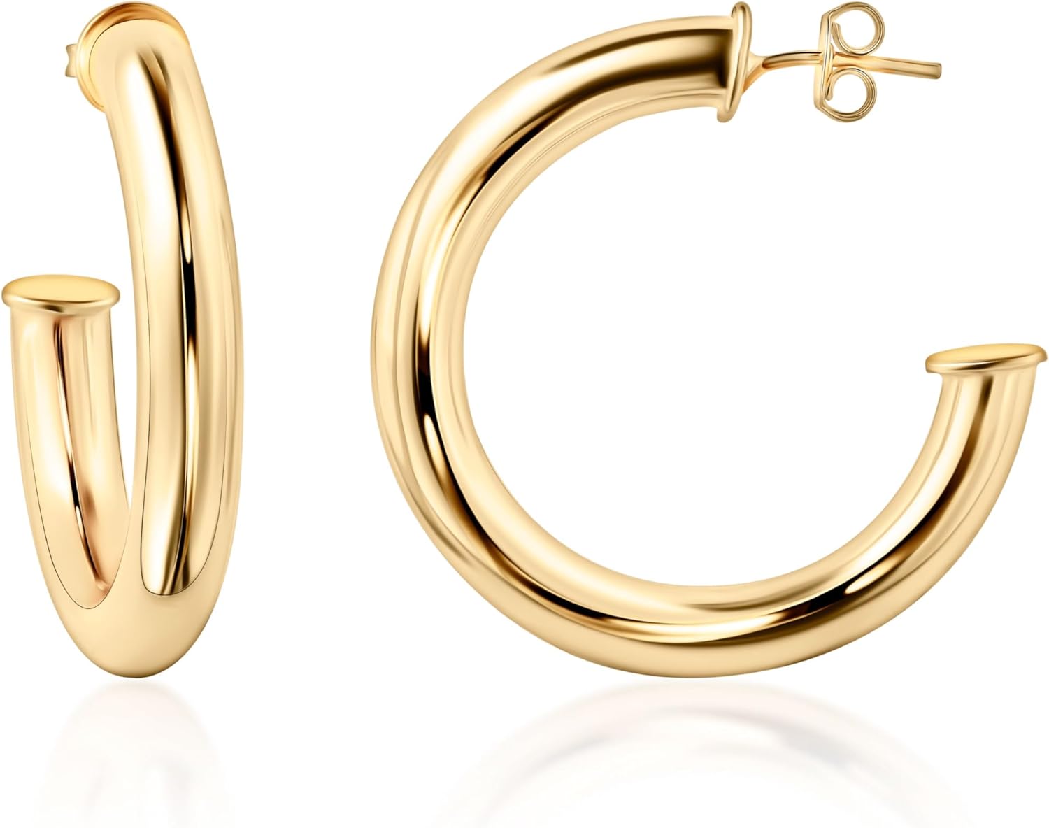 Barzel 18K Gold Plated Chunky Open Hoop Earrings for Women, Trendy Gold Hoop Earrings, 20mm-50mm, 5mm Thick, 4 Sizes, Made in Brazil, High Polish Finish