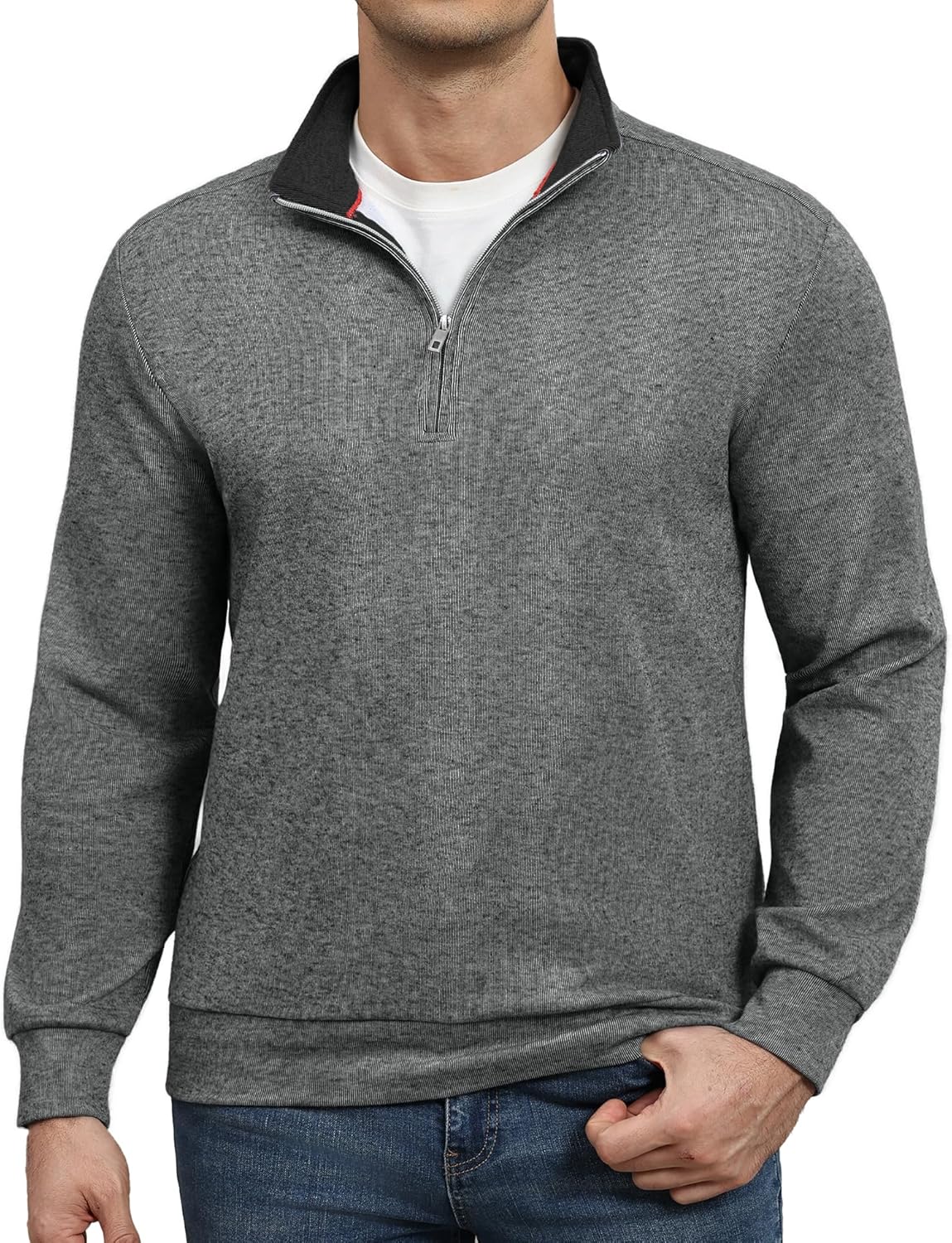 Susclude Quarter Zip Sweaters for Men Old Money Slim Fit Long Sleeve Fleece Knitted Pullover Soft Casual Office Sweater