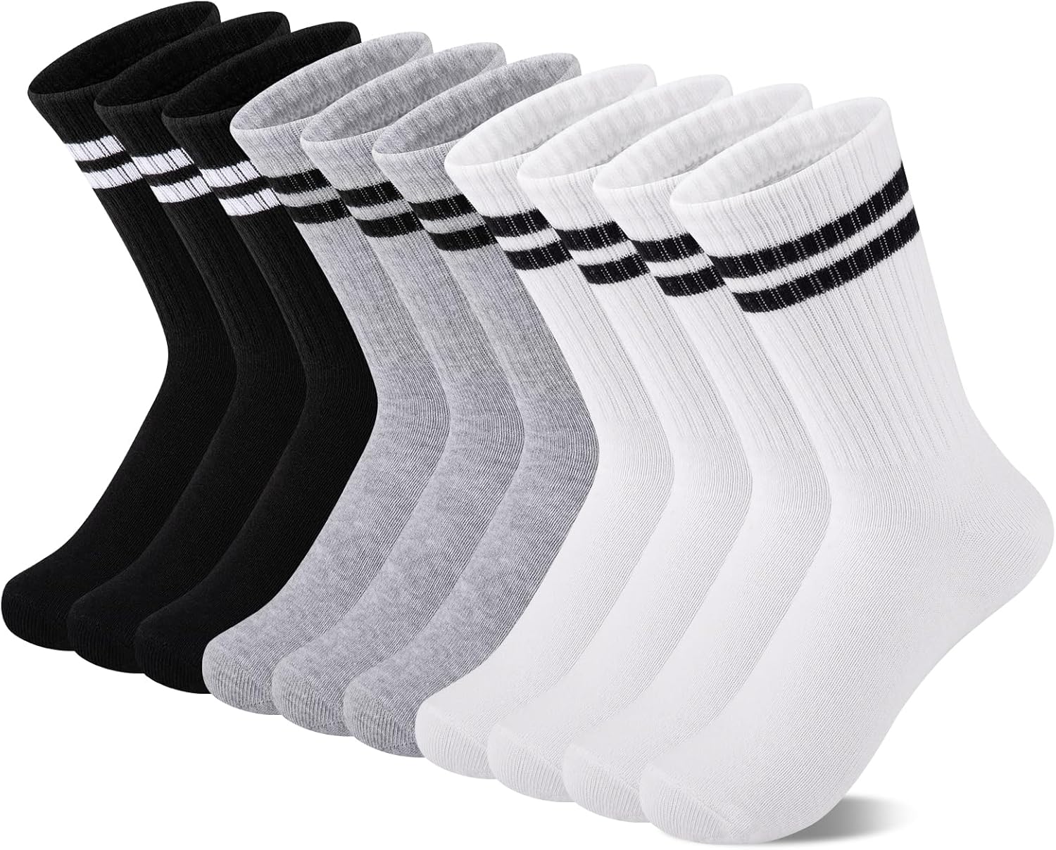 Comfoex 10 Pairs Girls Crew Cotton Socks Athletic Calf Striped Soft Casual Socks For Kids 4-6 6-8 8-10 Years Old