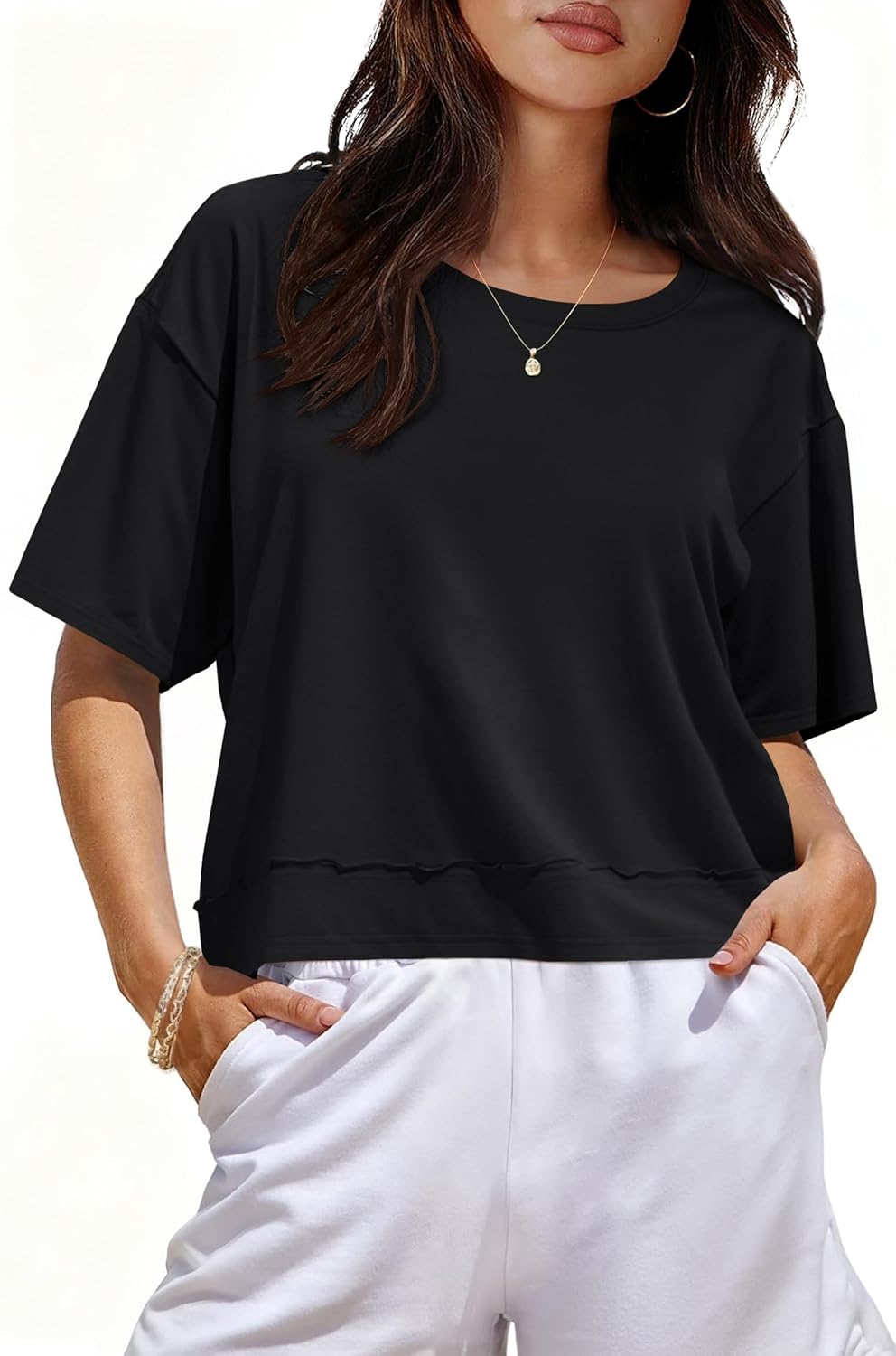 UNCLECAT Womens Short Sleeve Cropped T Shirts Crew Neck Trendy Tops Casual Solid Loose Fit Basic Tees