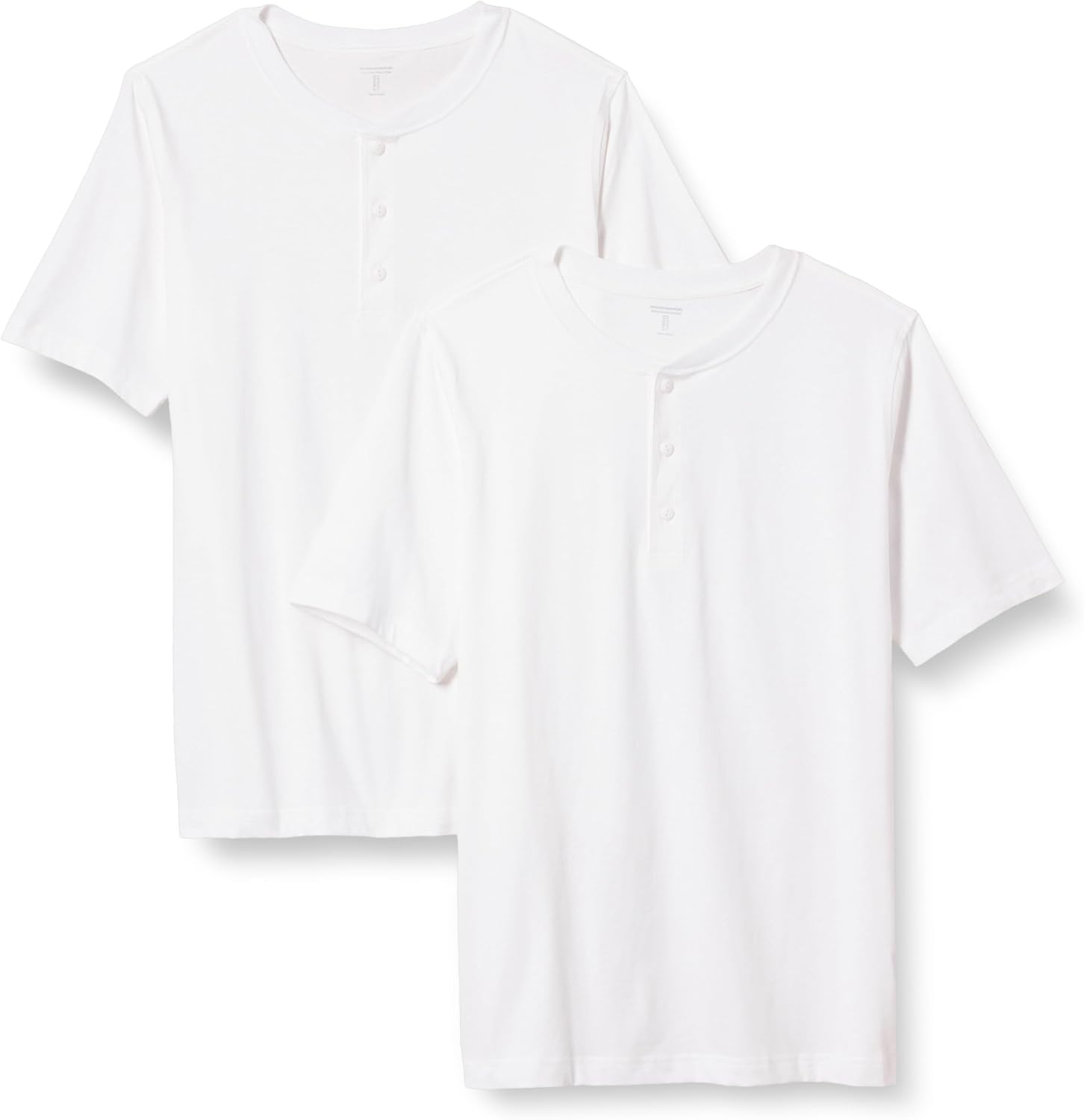 Amazon Essentials Men's Regular-Fit Short-Sleeve Cotton Henley T-Shirt, Pack of 2