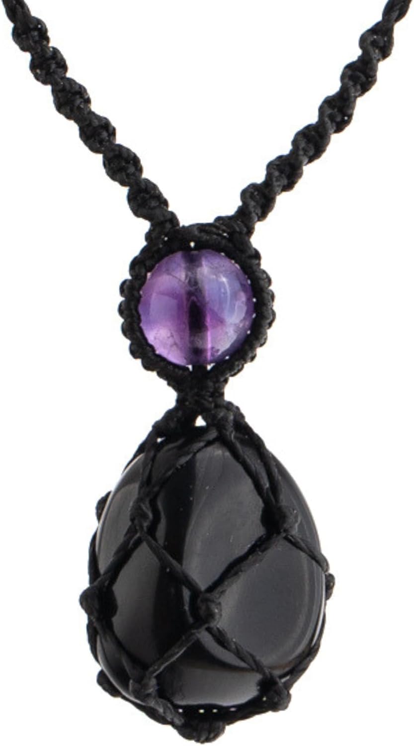 Black Obsidian stone Necklace – Adjustable Natural Crystal Pendant Jewelry for Men and Women