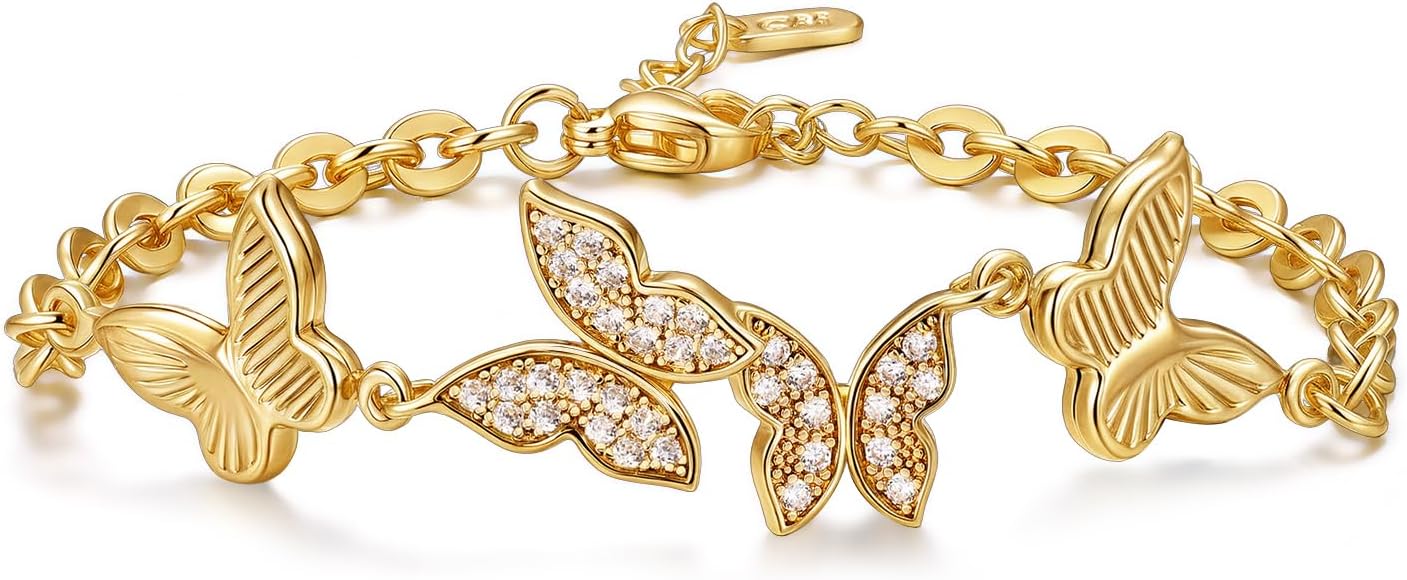 Bracelet for Women 14K Gold Plated Cubic Zirconia Bracelet, Classic Crystal Cuban/Cable Chain Bracelet, Delicate Link Bracelet Gift for Her