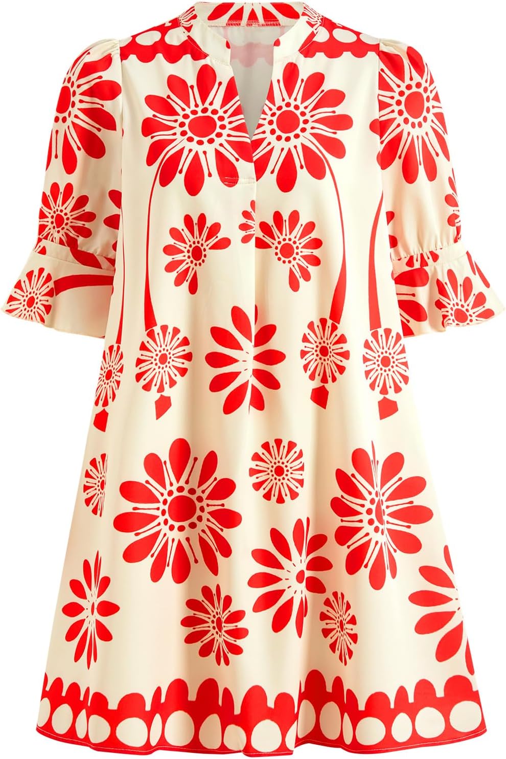 Women's Boho Floral Mini Dress Summer Ruffle Half Sleeve Flowy Sundress Beach Vacation Outfits
