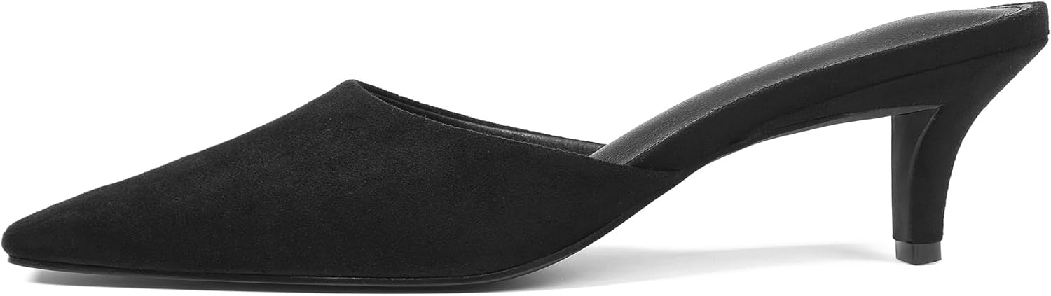 CELNEPHO Kitten Heels for Women Closed Square Toe Slip On Comfortable Dress Pumps Backless Casual Office Shoes Fashion Suede Mules