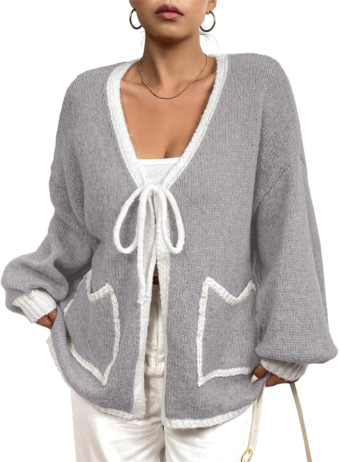 Women's Plus Size Cardigan Sweater Knit Open Front Long Sleeve Cover Up Casual Tops with Side Pockets (L-4XL)