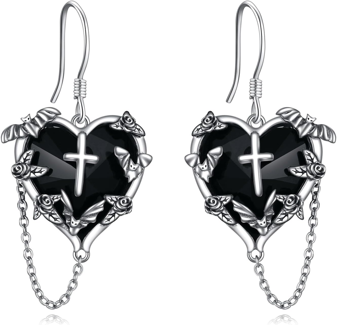 Halloween Earrings for Women 925 Sterling Silver Pumpkin Bat Black Cat Cross Dangle Earrings Hypoallergenic Halloween Jewelry Gifts for Her