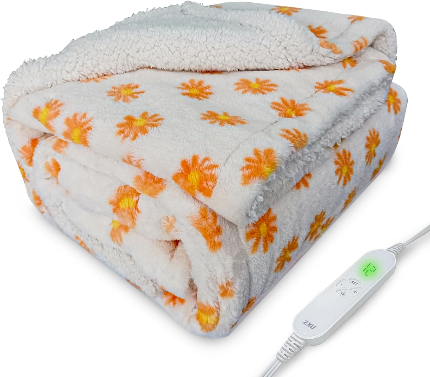 - Super soft and cozy: ZXU heated blanket was made with ultra smooth and soft plush fabric on the flower pattern side which is cute ,unique , and soft to touch . Other side was made with thick sherpa fabric, which is great for keeping cozy. It is soft , thick , and skin-friendly, provides you incredible comfortable using experience