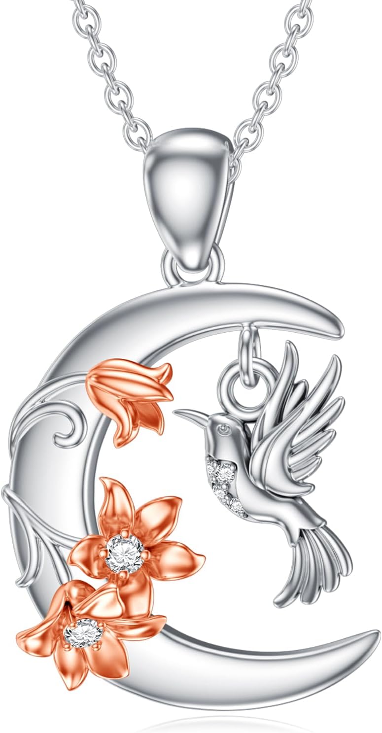 Diamond Hummingbird Necklace for Women 925 Sterling Silver Moon and Hummingbird Necklaces with Lab Grown Diamond Jewelry Gifts