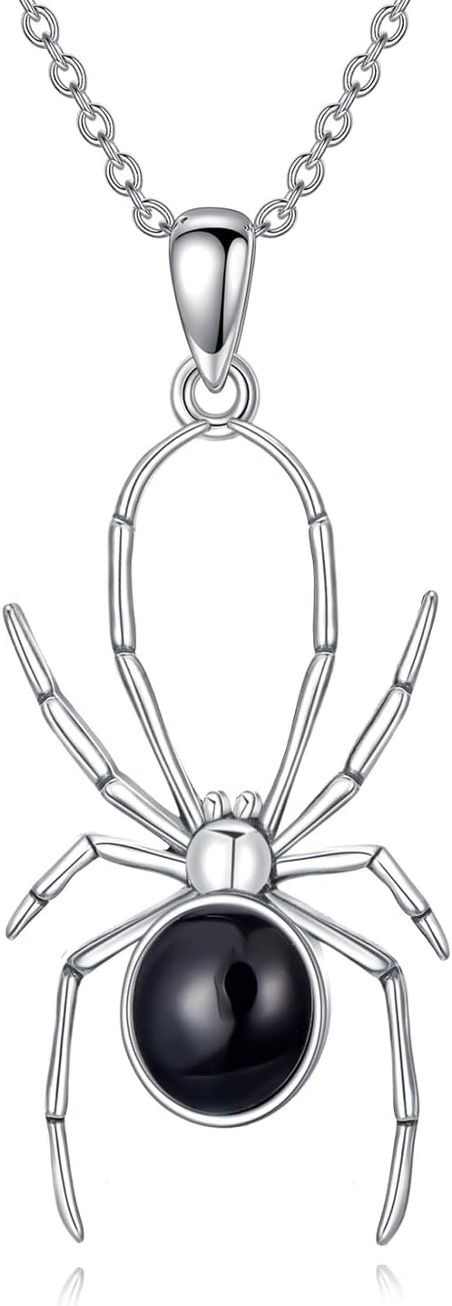 Onyx Spider Necklace for Women 925 Sterling Silver Spider Pendant Natural Black Onyx Spider Jewelry Gifts for Women