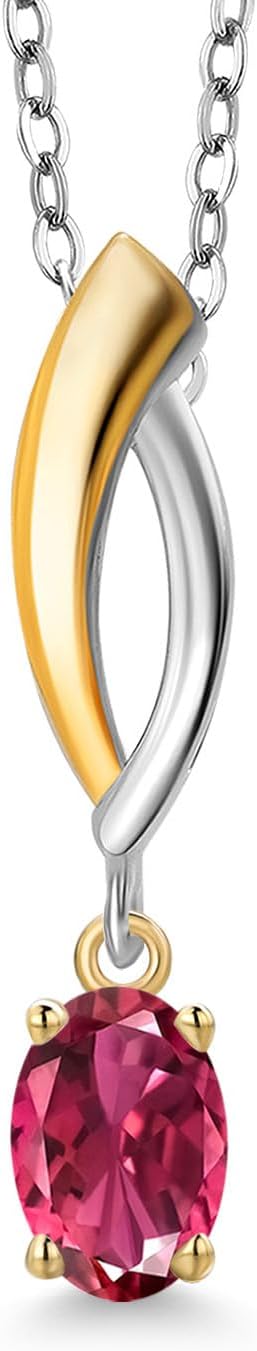 Gem Stone King 925 Silver and 10K Yellow Gold Pink Tourmaline Pendant Necklace for Women | 0.48 Cttw | Gemstone October Birthstone | Oval 6X4MM | With 18 Inch Silver Chain