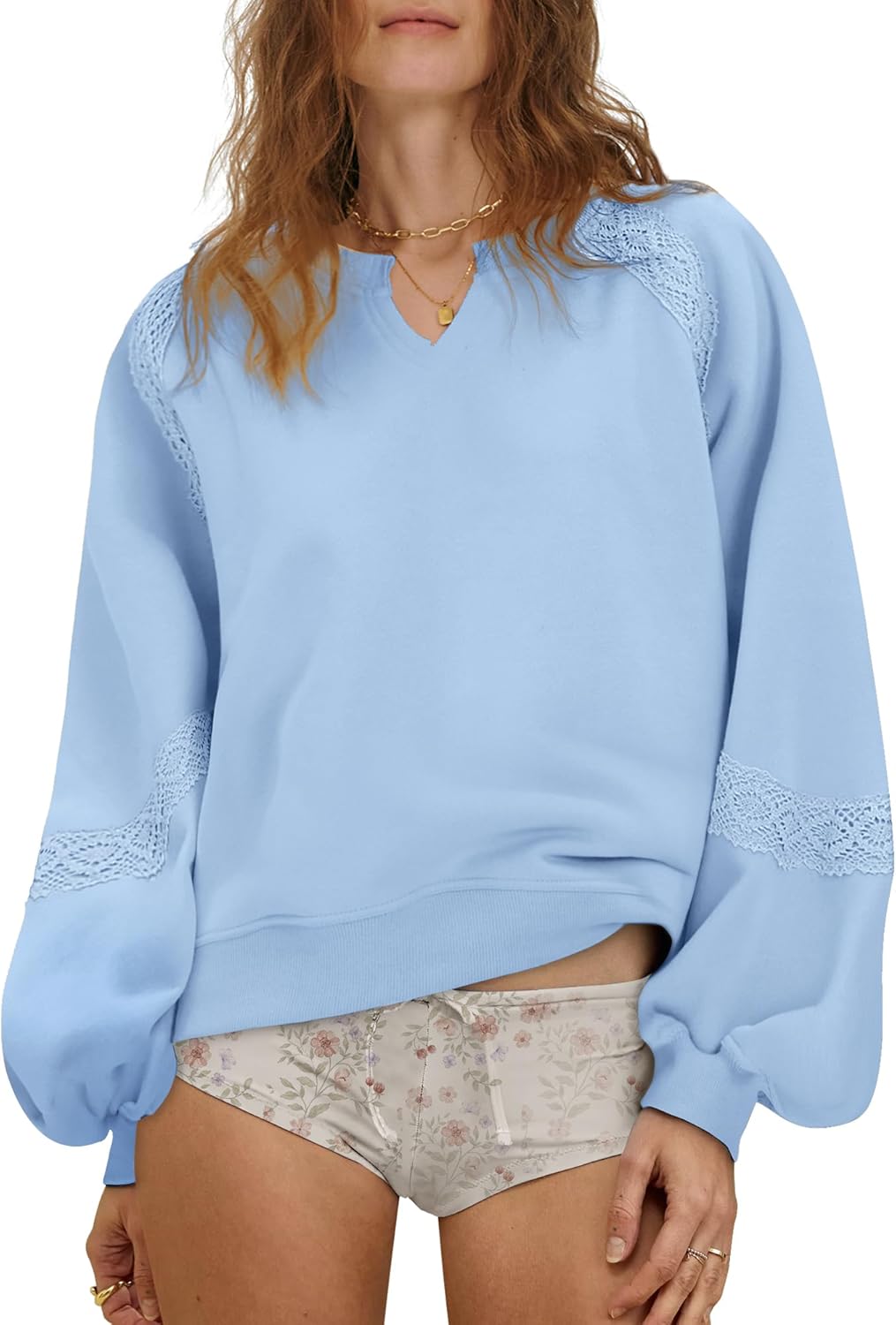 Locachy Womens Oversized Sweatshirt Embroidered Crochet Fleece Cropped Pullover Tops Fashion Outfits Clothes