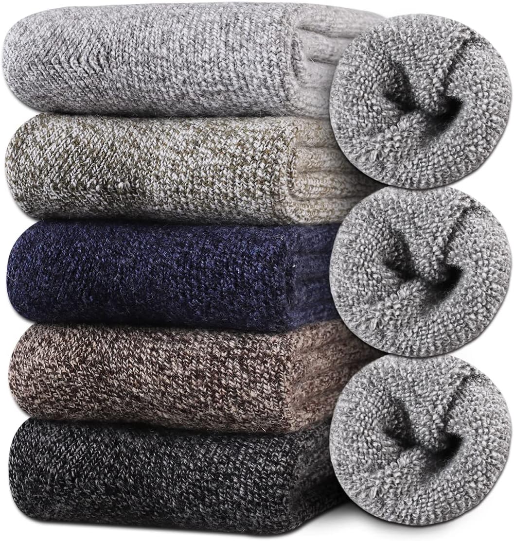 Heatuff Men's Winter Wool Socks Thermal Warm Soft Crew Socks (5 Pairs)