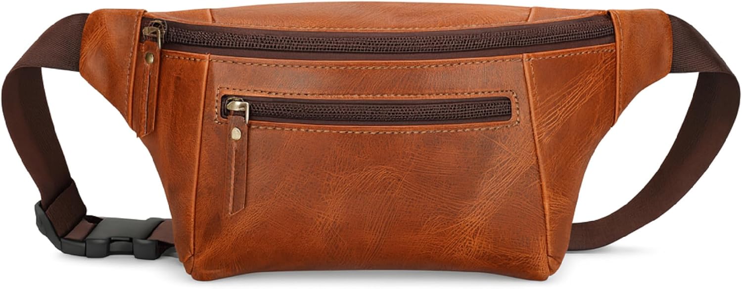 Leather Fanny Pack Crossbody Bag (10x6x2) Hands-Free Sling Bags With Adjustable Straps