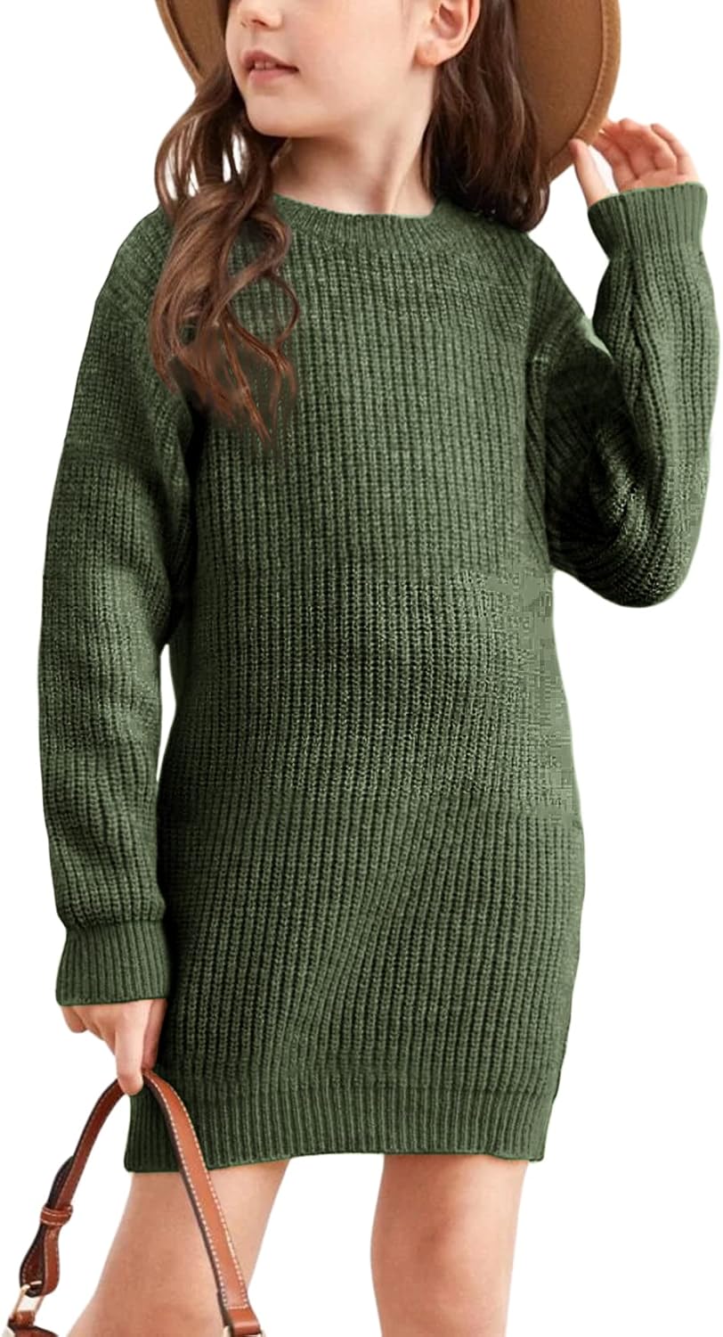 Hestenve Girl's Long-Sleeve Knitted Dress Pullover Long Sweater Bodycon Dresses Winter Christmas Clothes for Kids