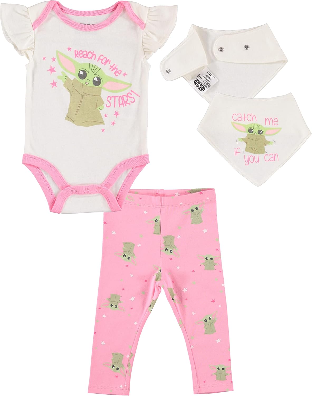 STAR WARS Baby Girls Baby Yoda 3 Piece Short Sleeve Bodysuit Pull-on Pants and Accessory