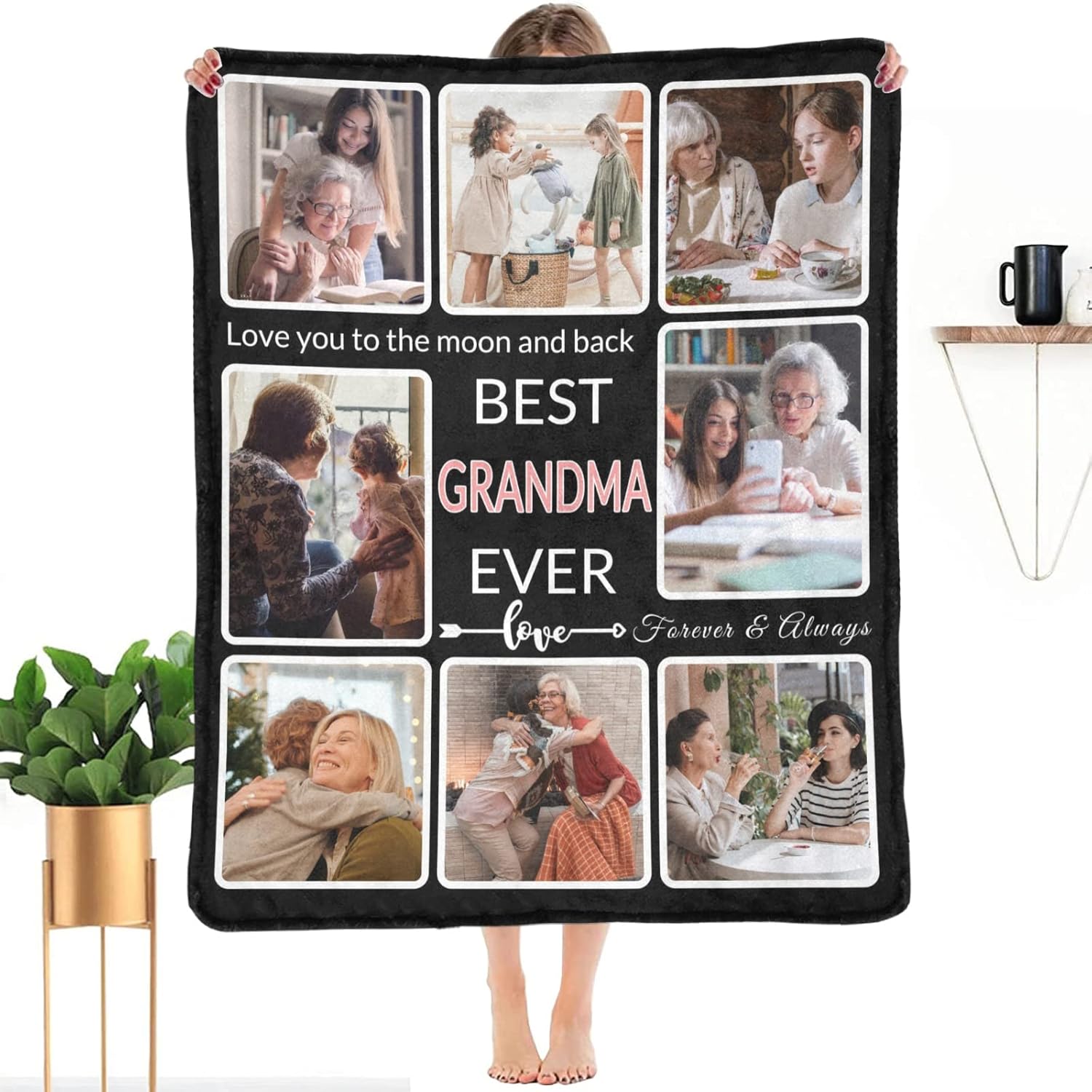 Gifts for Grandma Custom Blanket with Photo, Make a Personalized Grandma Gift Blankets with Pictures Customized Throw Blanket for Best Grandma Ever, 8 Collage Made in USA