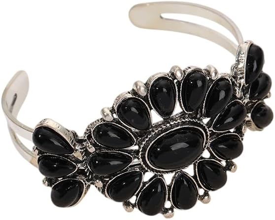 Bohemian Turquoise Bangle Bracelet for Women Statement Turquoise Jewelry Adjustable Ethnic Flower-shaped Teardrop Beaded Bracelet Boho Accessories Decor