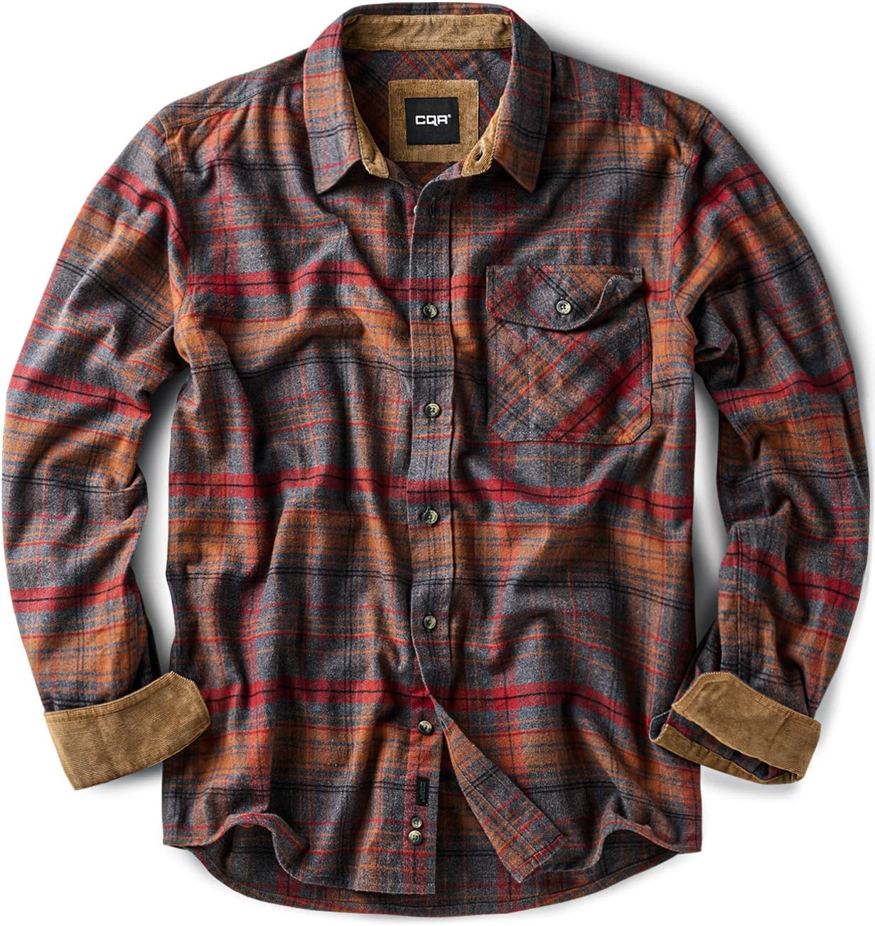 CQR Men's 100% All Cotton Button Down Flannel Shirts, Long Sleeve Brushed Warm Soft Casual Outdoor Plaid Shirt