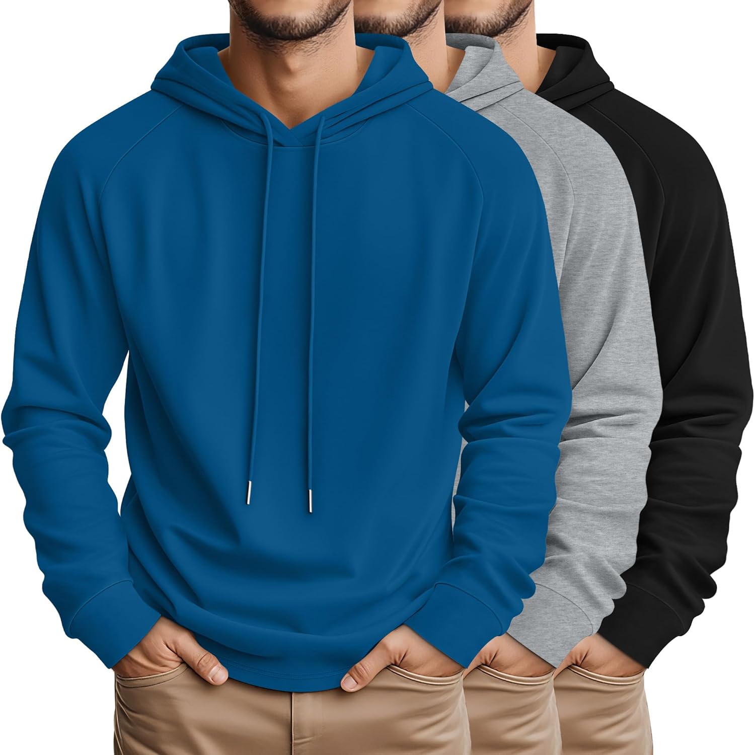 3 Pcs Mens Big and Tall Hoodies Long Sleeve Pullover Lightweight Hooded Loose Drawstring Athletic Sweatshirts